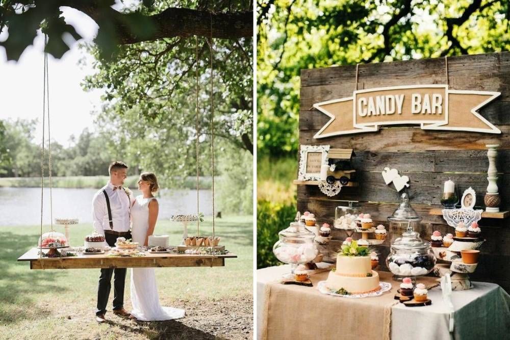 Słodki stół na ślub zorganizowany na wyjeździe